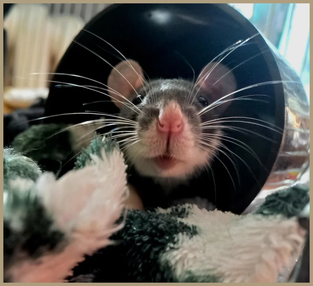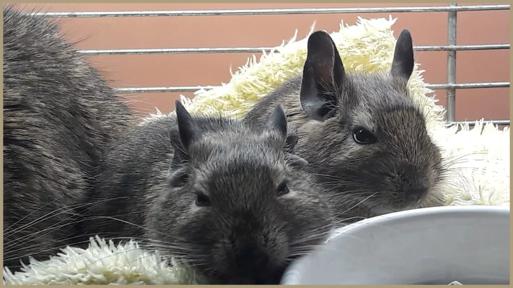 „Ziemniaczek od niedzieli ma swój domek i siostrę Rybkę. I choć na razie fruwa futerko i iskrzy między nimi, dzielnie poznaje wszystkie zakątki domku. Za granulacik da się nawet pogłaskać.”